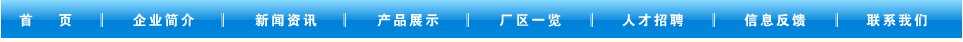 | 首 頁 | 企業(yè)簡介 | 新聞資訊 | 產品展示 | 企業(yè)榮譽 | 營銷網絡 | 人才招聘 | 信息反饋 | 聯系我們 |